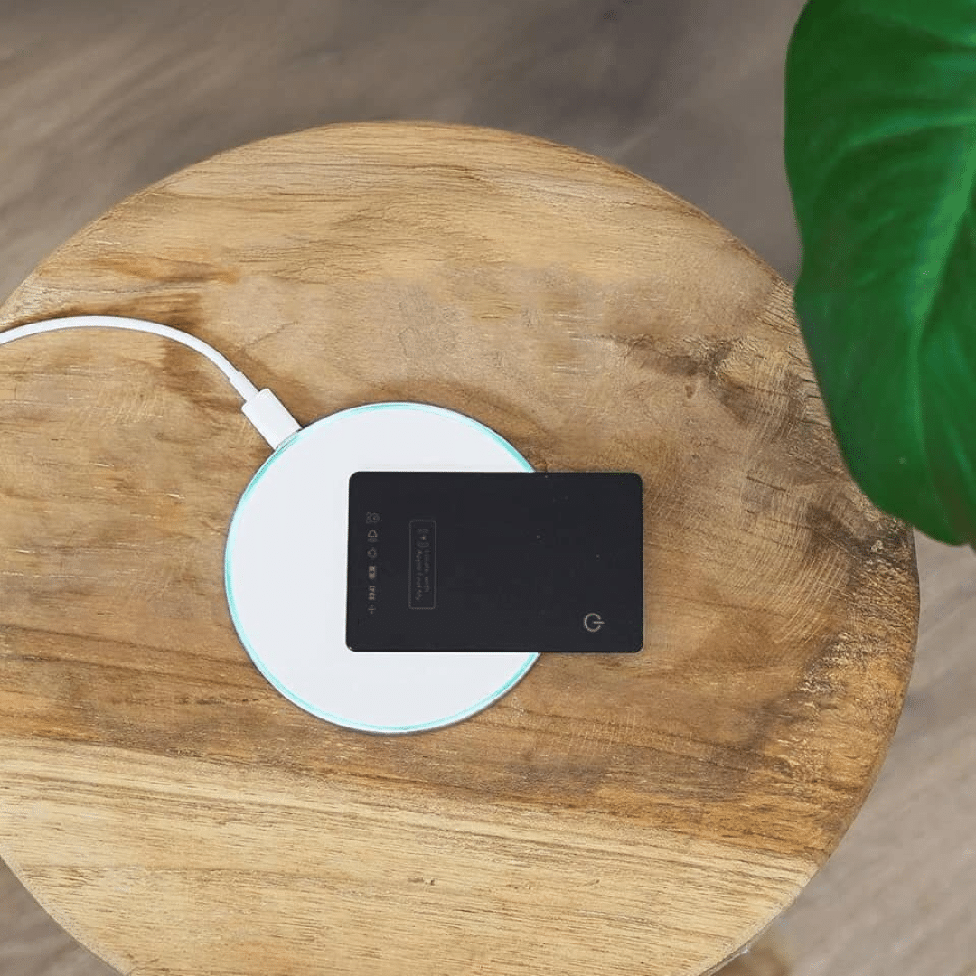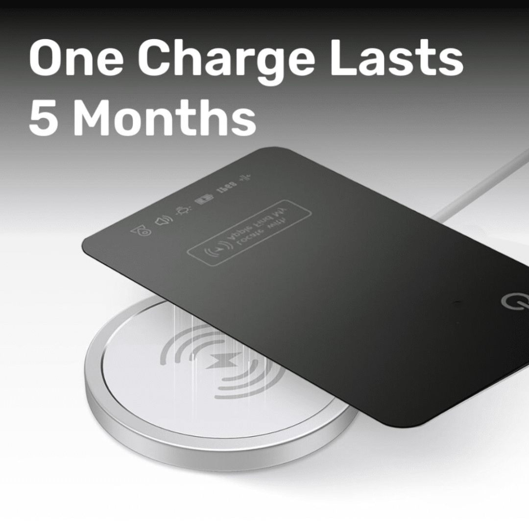 - Recharge your Tagsley Tracking Card periodically using a compatible wireless charger, and check battery status from time to time so tracking is always active.